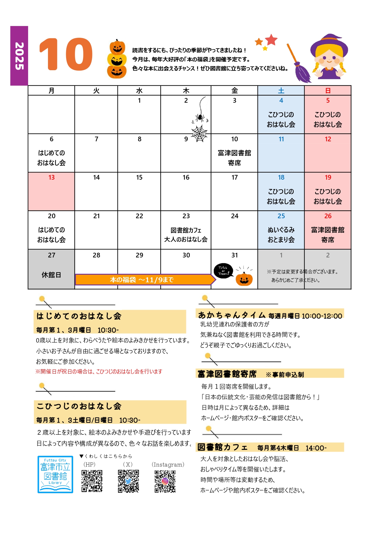 10月のおはなし会「イベントカレンダー」 | 富津市立図書館