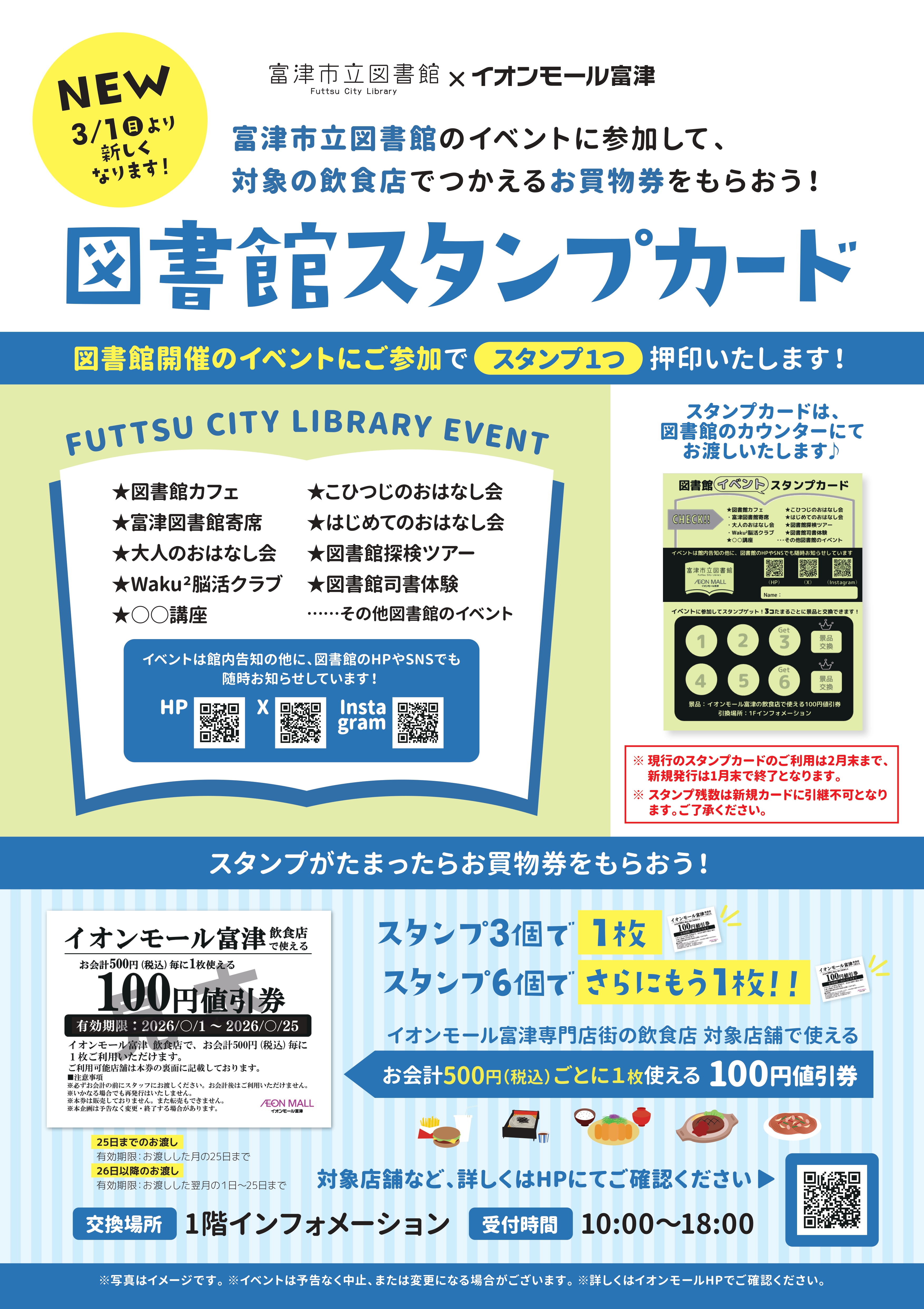 2026年3月1日(日曜日)より図書館スタンプカードが新しくなります